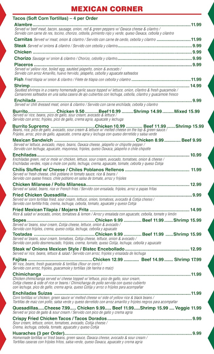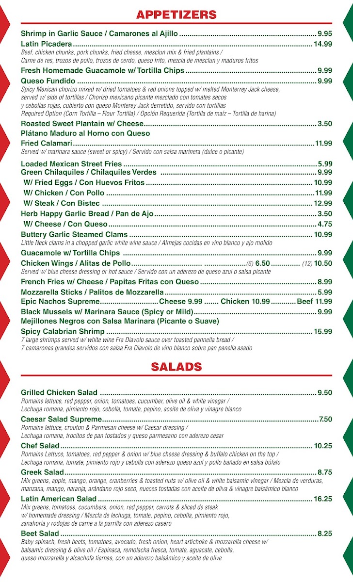 Welcome to the Latin American Restaurant, a vibrant culinary gem nestled at 800 Main St, Boonton, NJ. Our menu offers a tantalizing journey through the rich flavors and diverse dishes of Latin American cuisine. From mouthwatering burritos the size of your head to perfectly seasoned grilled chicken platters, each dish is freshly prepared to ensure a memorable dining experience.